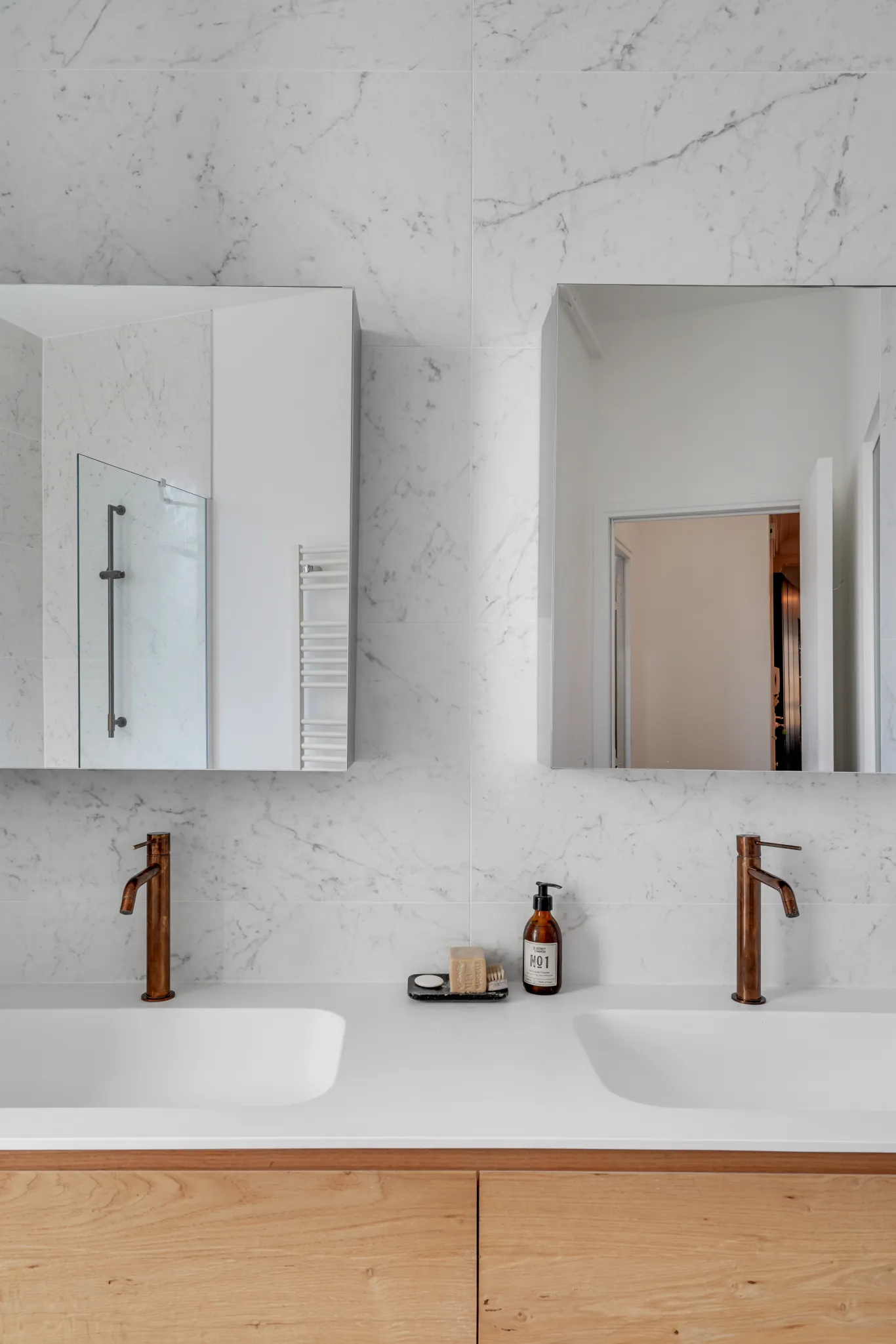 - Menuiserie (meubles vasque, rangements, portes)